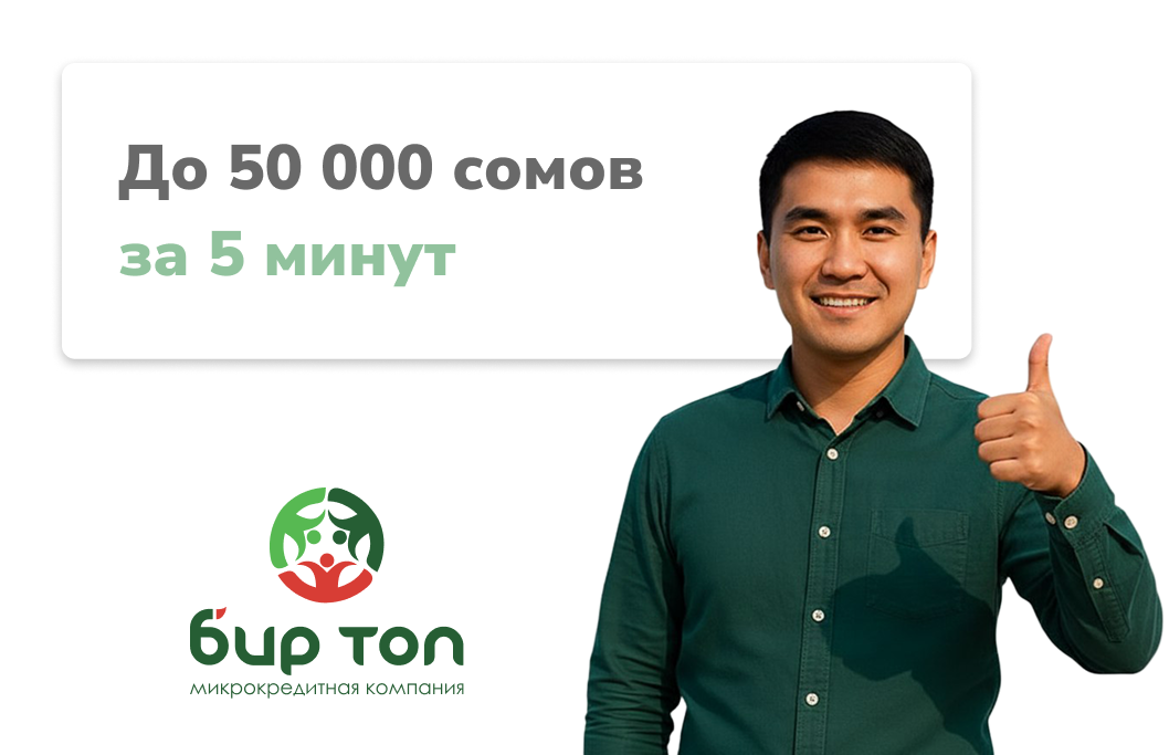 Сервис кредитования предоставляется Общество с ограниченной ответственностью «Микрокредитная компания «БИР ТОП». Свидетельство НБКР №423 от 09.01.2012г.»